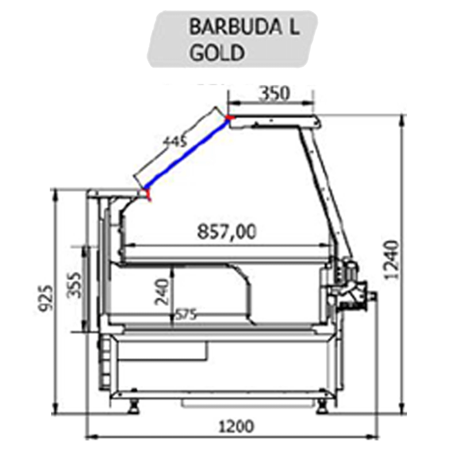 BARBUDA model, which was designed for the display of deli meats, meats and various packaged products, offers a large stainless steel display surface, rich color options, ease of cleaning, capacity of placement and service of products and perfect ergonomics. Internal and external bends with rounded tempered glass provide the perfect display area that grabs attention in your store. It is at the forefront with its ergonomics and elegance as a perfect preference for supermarkets, hypermarkets and selected butchers and dairy products. • Presentation in stainless steel whose level can be adjusted. • It allows easy cleaning thanks to its tempered glass which opens upwards. • Cooling with fan. • Optional lower storage just below the products on display. • With an internal engine (plug-in).